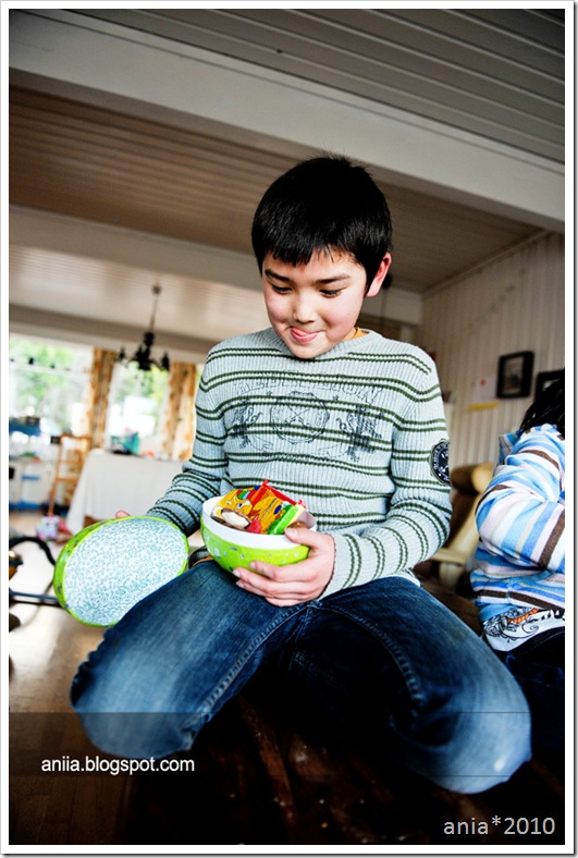 Alright, it’s been a while since I devoted a whole post to my kids (bragging is a mothers right, no?), so what’s following now is a few photos of the kids getting their Easter-egg (we’re fortunate having nice grandparents – my mom sends the kids Advent-calendars for Christmas and my husbands mother gives them Easter-eggs = less work for for us, yay!).