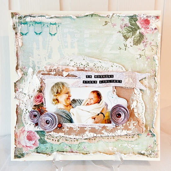 Here’s a layout I created with the new “Sweetheart”-papers from 3ndypapir :) The papers are so romantic and tender – perfect for Spring :) I am not quite sure if I am “drowning” the picture with everything that’s around it though, hmm.. the picture is of my mother and nephew…sigh..oh, how I do miss him!